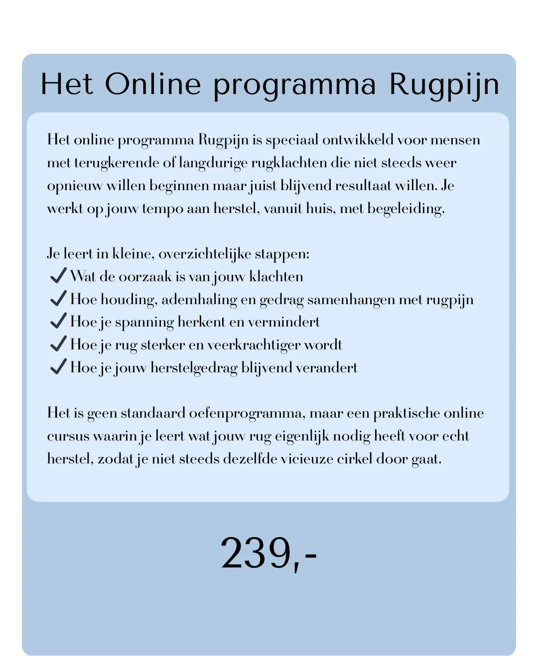 De investering voor de online cursus Rugpijn bedraagt €239.