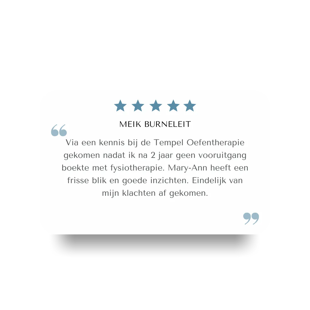 Ter vergelijking: bij fysiotherapie betaal je vaak per behandeling (of je hebt eerst een eigen risico van €385) en ben je afhankelijk van afspraken en beschikbaarheid. Met dit online programma kun je in je eigen tijd werken aan herstel, zonder terugkerende consultkosten.